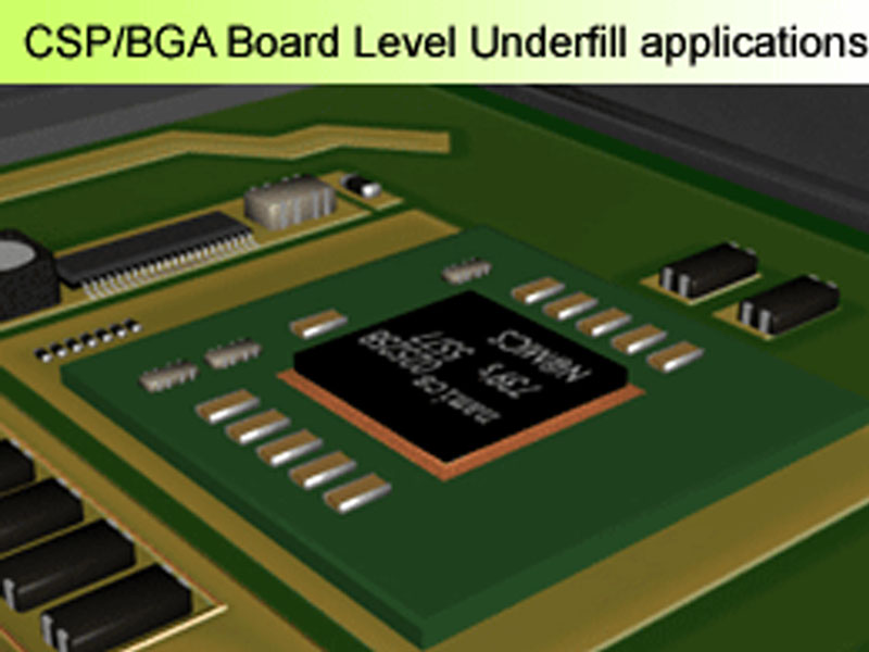 ----- Reworkable epoxy underfill is designed for CSP and BGA applications. It cures quickly at moderate temperatures to minimize stress to other components, and when cured provides excellent mechanical stress protection for solder joints.